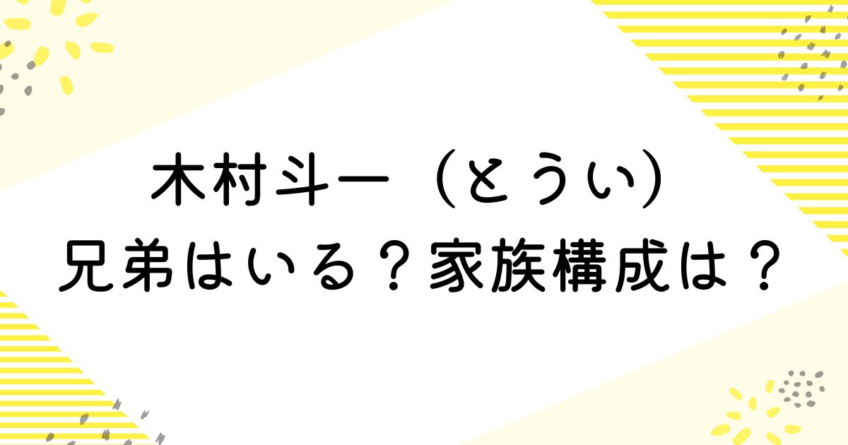 現時点の信頼できる情報では、木村斗一さんの兄弟の存在は公表されていません。