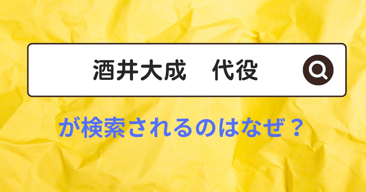 検索欄には「酒井大成 代役」という関連ワードが出てきますが、「なぜ代役?」と疑問に思う方も多いのではないでしょうか。